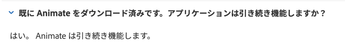 公式FAQでは「Animateは引き続き機能する」と明記されています。